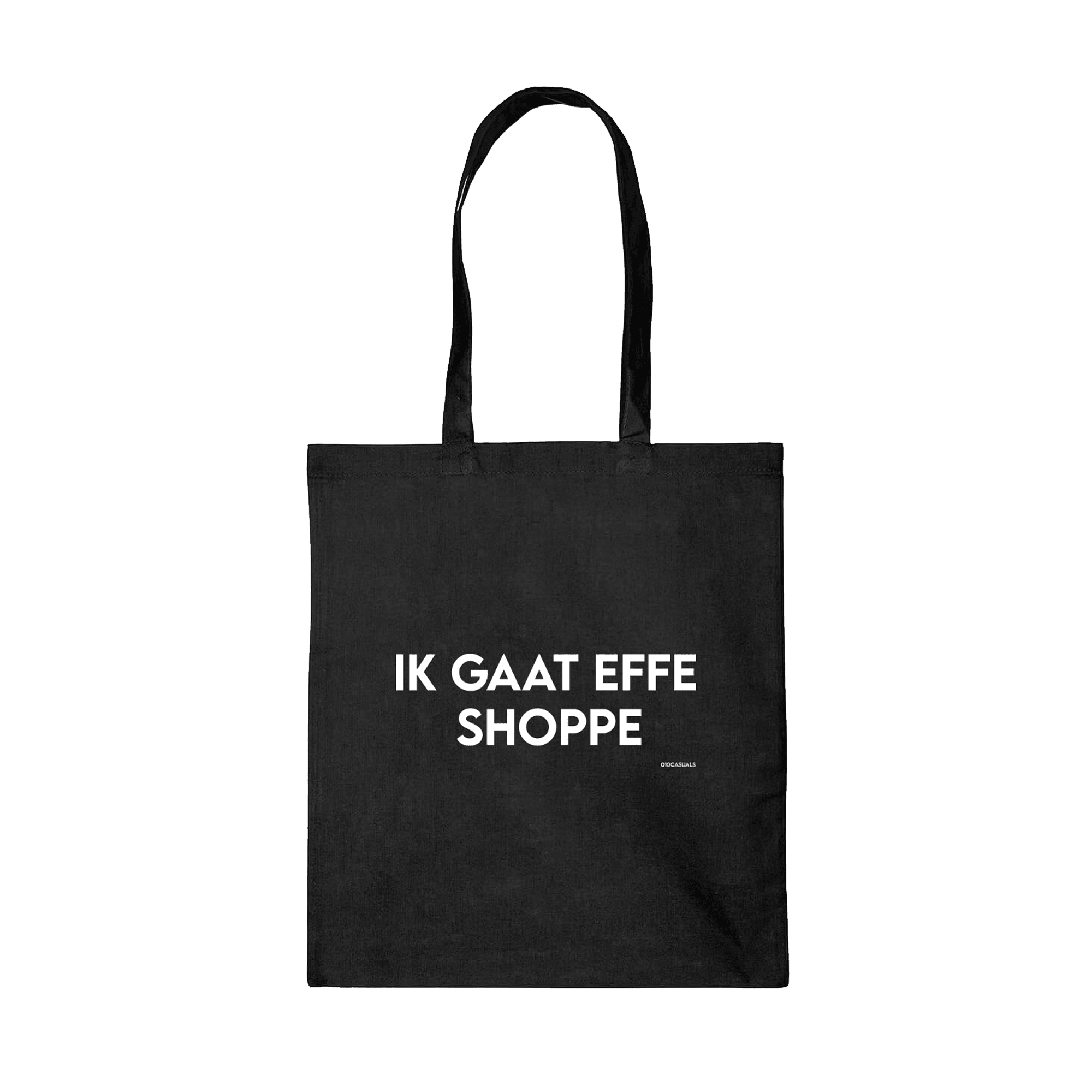 Deze tas heeft een afmeting van 38 x 42 cm en heeft lange handvatten van ca. 70 cm.