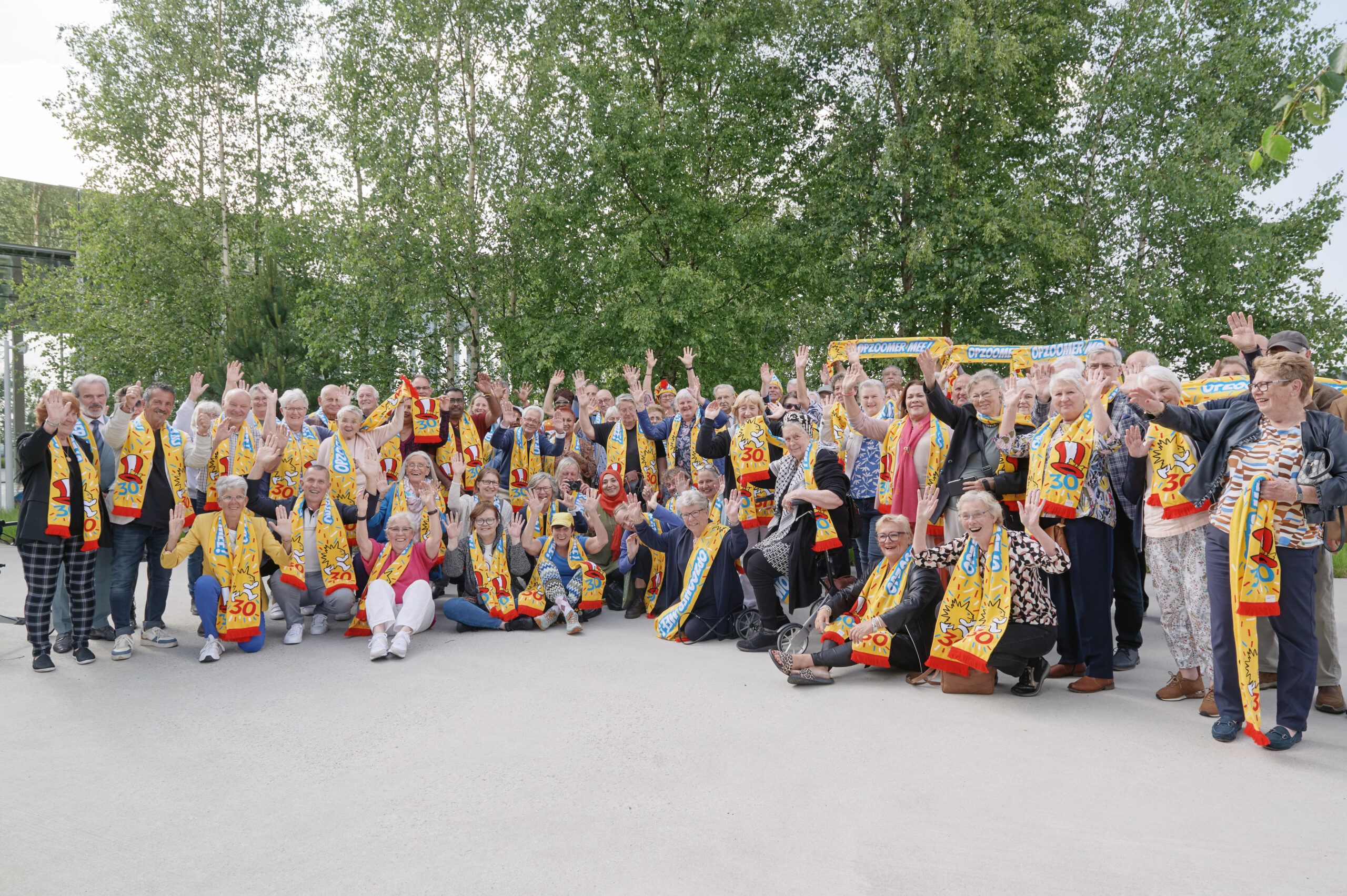 “Voor het dertig jarig jubileum hebben we trouwe Opzoomeraars in het zonnetje gezet. Dit was een groot feest. De mensen kregen een sjaal, of zoals wij het noemen een lintje, dit is de Opzoomertrofee. Deze sjaal is te herkennen aan het oude logo en het huidige logo. We hebben er een feestelijke bijeenkomst van gemaakt en het was prachtig om verhalen op te halen met ze allen. Net zoals we nu doen.”